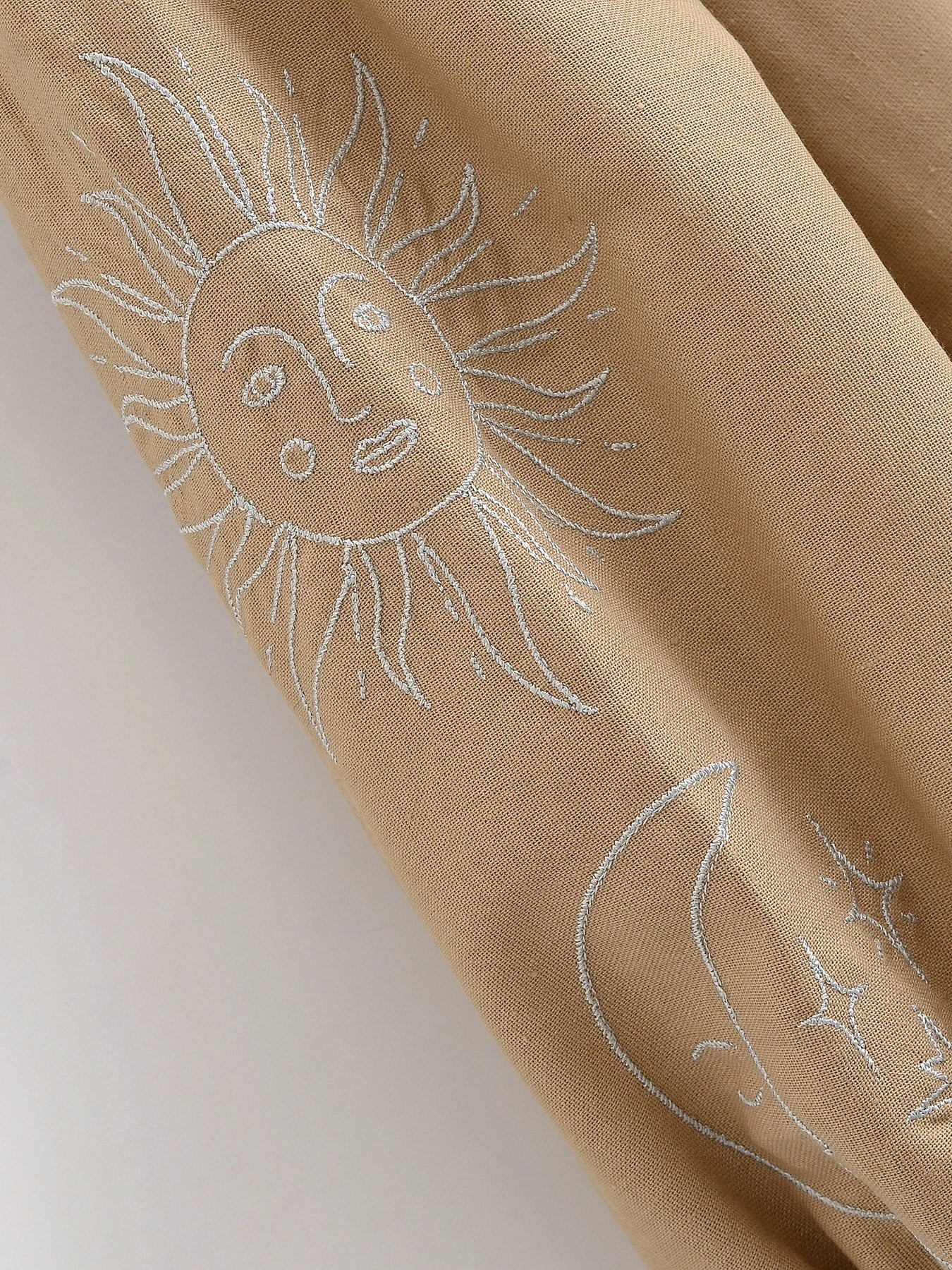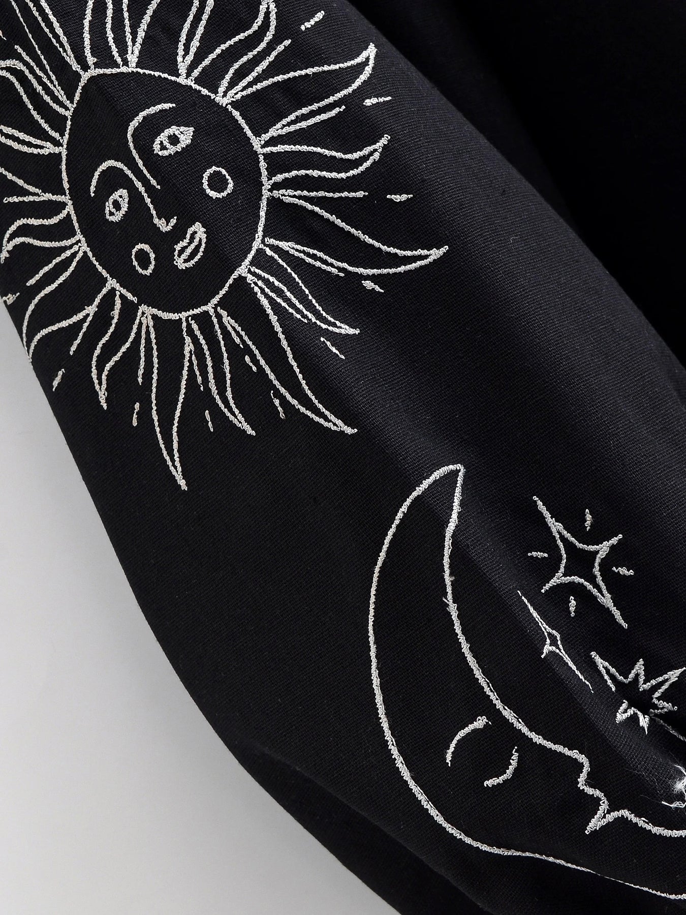 Noctura Celestial Embroidered Blouse channels a mystical night-sky aesthetic with moon, star, and sun embroidery sweeping across its flowy silhouette. Soft tassel ties and billowed sleeves add a dreamy boho touch, blending comfort with cosmic charm. Perfect for elevating everyday outfits or embracing your inner moon-child with effortless style.