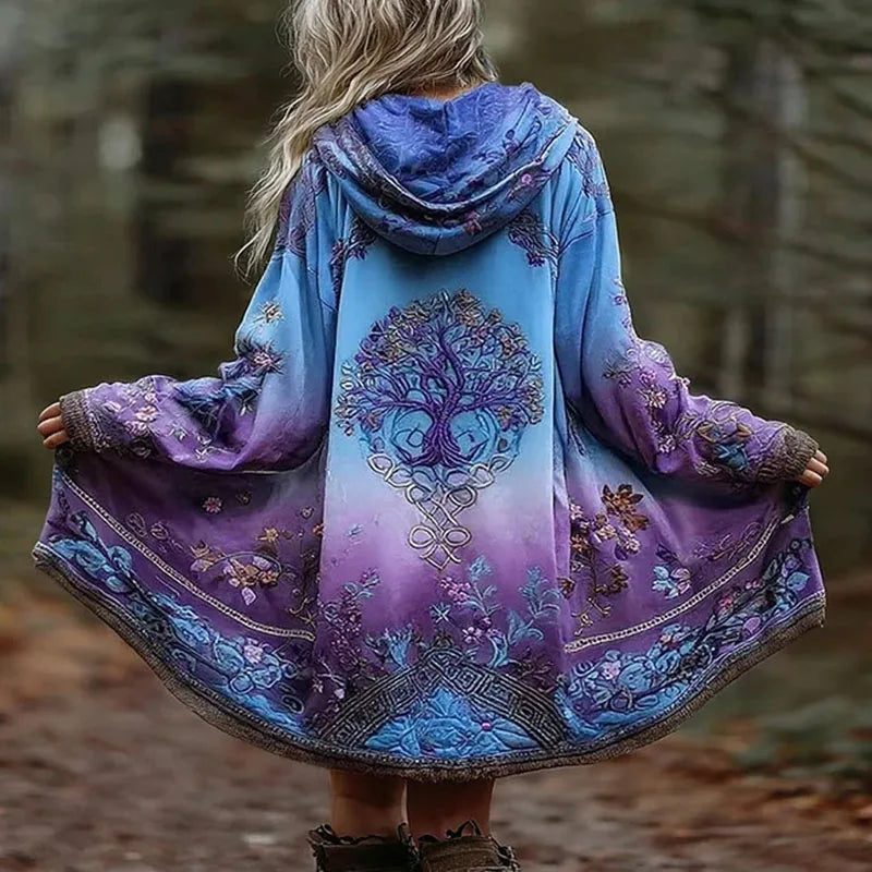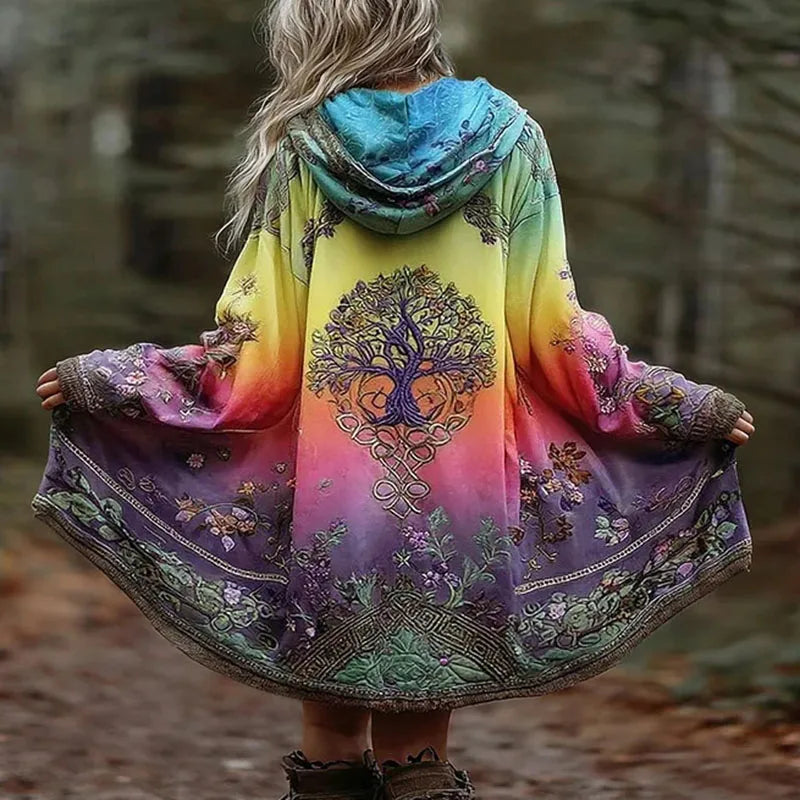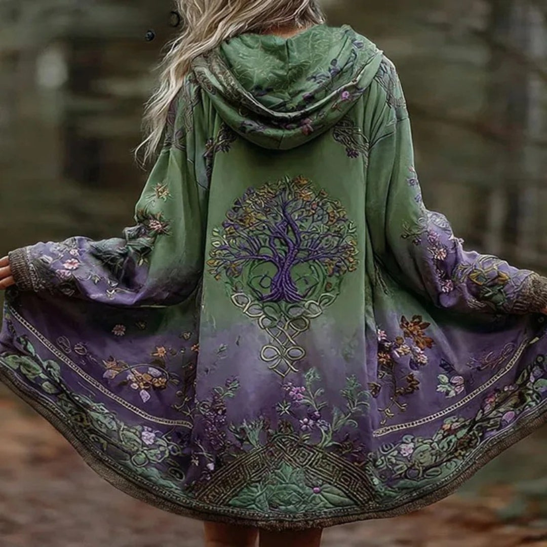 Wrap yourself in grounded magic with the Eirene Celtic Tree Cloak. Featuring a flowing silhouette, hooded design, and an intricate Tree of Life print, it blends earthy tones with a soft, draped feel. Effortless, mystical, and made for layering in cooler moments.