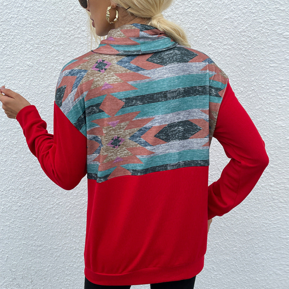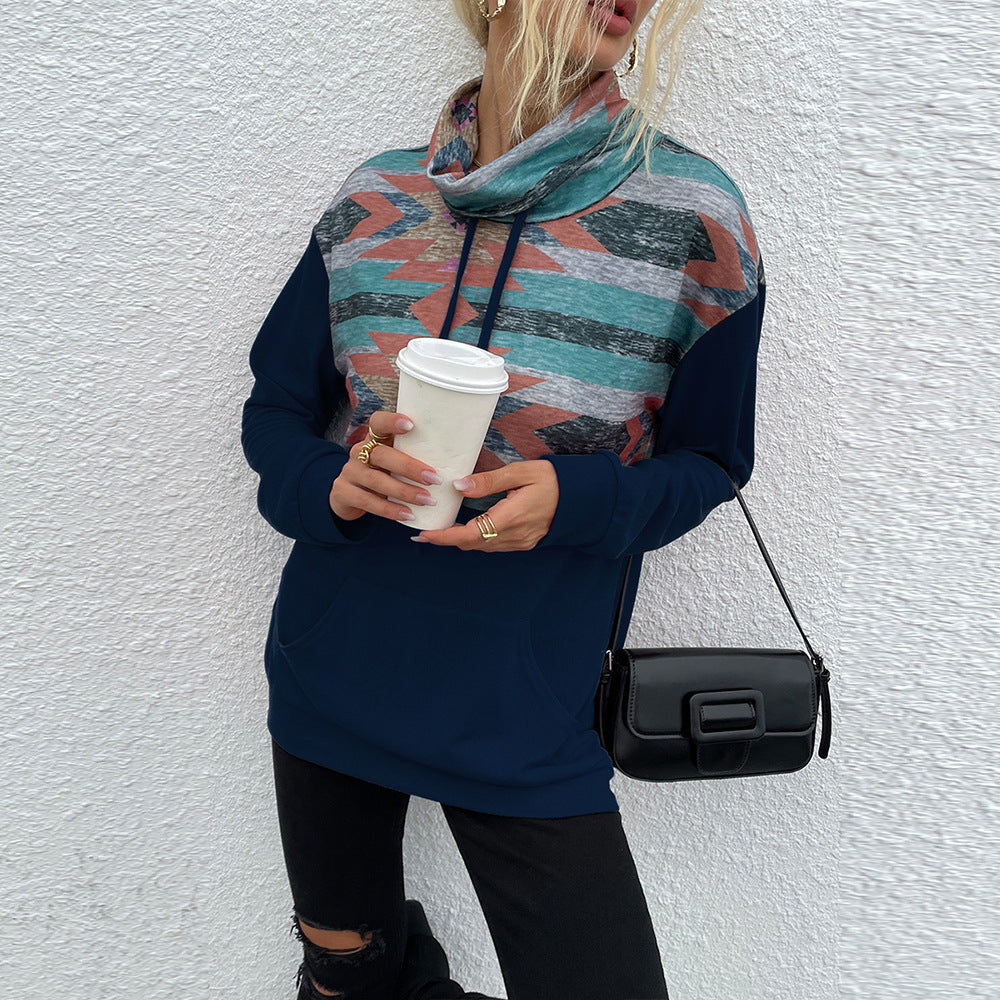 A cozy cowl-neck hoodie with an eye-catching Aztec print and relaxed fit for everyday comfort. Anassa blends soft fabric with bold style and is available in multiple colors to match your mood.