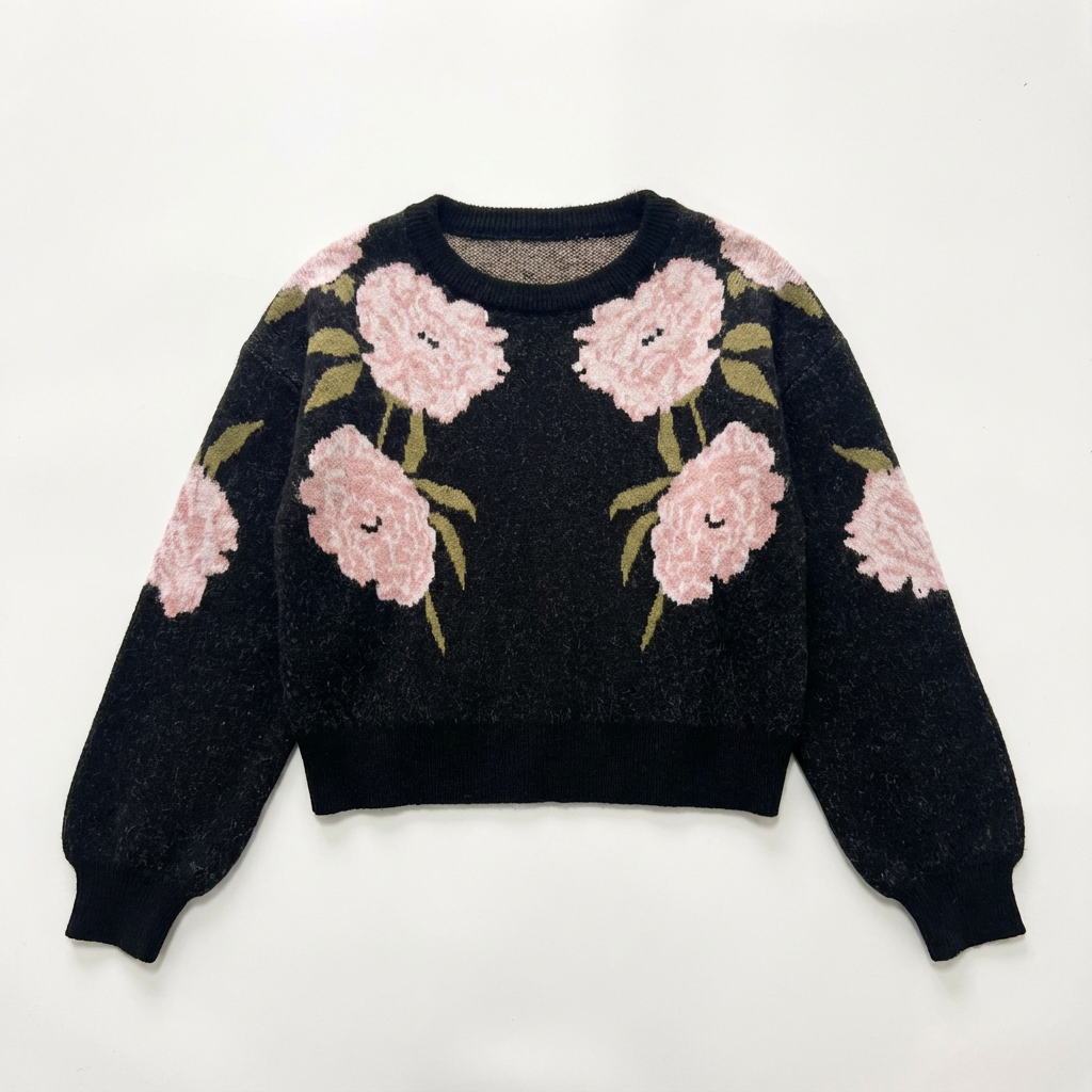 Soft, feminine, and effortlessly cozy — the Liana Floral Knit Sweater brings charm to any outfit with its delicate blush flowers and relaxed silhouette. Crafted in a warm, plush knit, it drapes beautifully for everyday comfort. Pair it with skirts or denim for a timeless, romantic look.