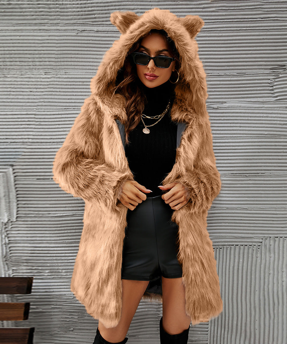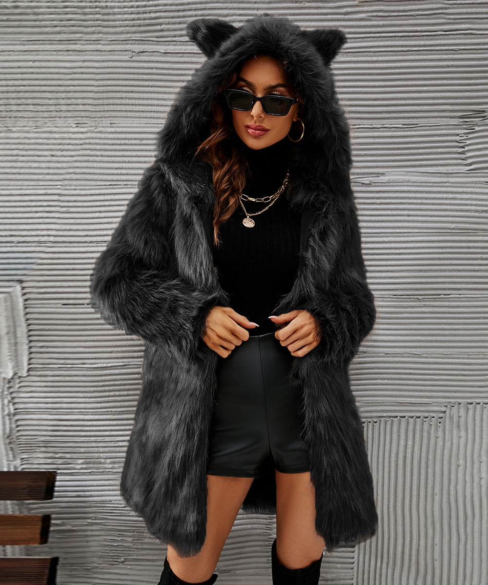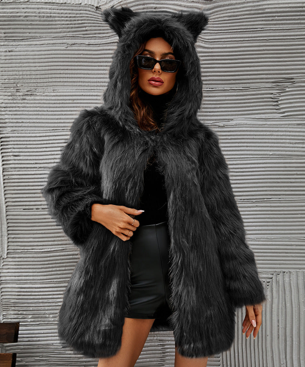 Embrace bold winter style with the Raven Faux Fur Hooded Coat. Featuring ultra-soft plush fur and playful ear details on the hood, it brings a chic, cozy edge to any cold-weather outfit. Perfect for nights out or statement-making street style, it keeps you warm while turning every head.